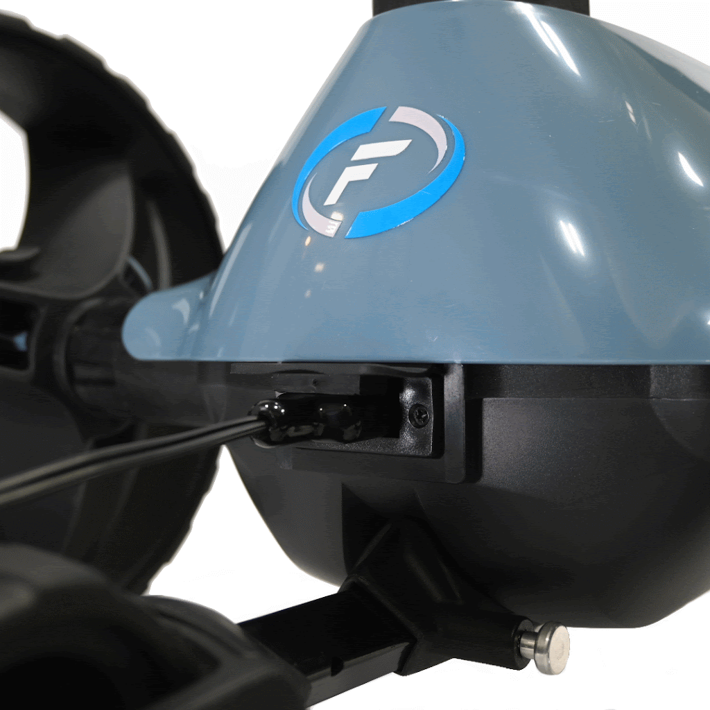 The easily-accessible rear charging port ensures convenient and efficient charging. Whether folded, or unfolded with the golf bag still attached, the rear charging